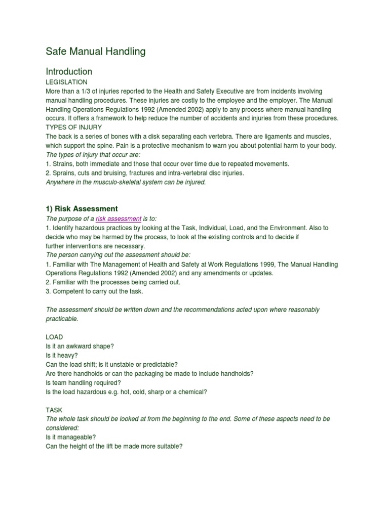 Policy For Safer Manual Handling Operations Pdf Free Download
